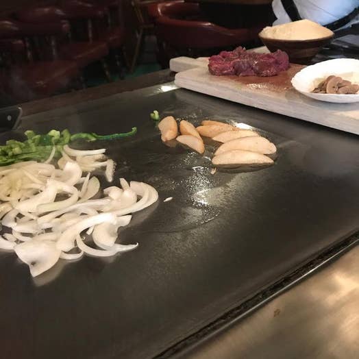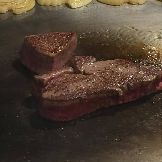 店内は各ボックス席ごとに専属シェフが立つ鉄板と囲うソファー席が設けられていて雰囲気もいい感じ。素敵な空間です(^^)