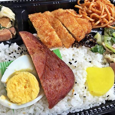 曙にある【ファミリーストアー あけぼの】の350円弁当です。 足場が組まれていたので、看板の塗り直しなのかもしれませんネ。 レストランやキッチンのハンバーグとは別物なチープ感(褒め言葉です)がまたいいじゃないですかぁ♪ 汁ものも販売されており、冬瓜や糸瓜汁(へちま汁)は単品で300円、ライス付きが350円でした。 #弁当 #那覇市内