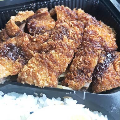 初訪問の那覇市西にある【かわひら】で「トンカツBロース弁当」450円を購入しました。 場所は58号線の泉崎交差点から消防署通りを進み、西交差点手前の左側にあります。 丼ものは250円のオムライスから450円くらいのものが中心で、ワンコインでお釣りがくる価格設定です。 画像では分かりにくいですが、揚げものも充実しており、イカ天ぷらの60円から上限150円くらいで、100円のものが多いようでしたヨ。 今まで見てきたカツの入った弁当はハーフサイズのところが多かったんですけど、こちらはフルサイズのものを上下に重ねており、その下にスパゲティが仕込まれています。 トンカツBロース弁当のソウスは別添えではなく、あらかじめかかっているため、重ねられた下のカツにソウスが行き届いていないのが残念なところ。(ち、小さっ、自爆) 玉子は味玉、カツはかな~り薄めでしたが、ほうれん草、もやし、ニンジンの和えたヤツがツボでした. 弁当を買い、店を出ると、傘なしでは涙目の土砂降りなのだった。。。(涙、笑) #弁当 #那覇市内