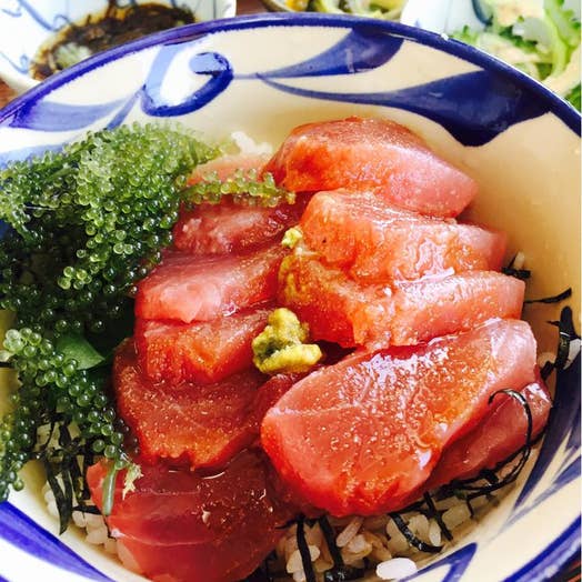 和豚もち豚のトンカツや沖縄そば、ハンバーガー、ニューヨークステーキといったメインメニュー、島らっきょう、海ぶどうそうめんチャンプルサイドメニューも豊富!