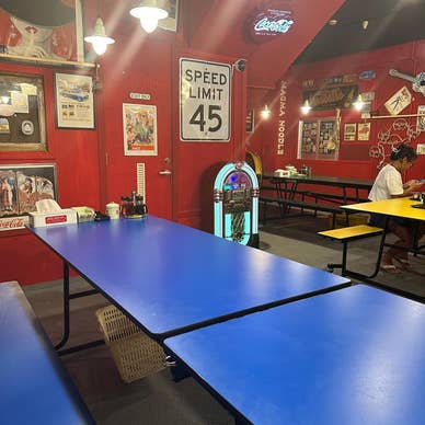 今日はコザの宿題店となっている2軒に伺おうとしていました。 1軒めは2年前の4月、店主の体調不良でフラレた「あご出汁らーめん樽斗」へ。 水曜定休となっているのに、今回もまさかの臨休? よほど縁のない店なのかなぁ。(汗、笑) 気を取り直して、昨年8月にオープンした【MAGMA NOODLE】を訪問です。 場所は6年ほど前、Gochiの大将に連れてきて頂いた、マチグヮーにある、みやぎストア(何とスーパーの中で酒が呑めるというスゴイ店、笑)の1本裏手にありました。 ゲート通りの1本パークアヴェニュー寄りとなります。 店の前に着いてビックリ「わぉっ、こりゃあ、スゴイ」(笑) このアメリカーな雰囲気を感じたのは北谷のStripe以来かなぁ、超かっこええです。 観光客にもぜひ来て欲しいなぁと思いました 店内に入るとすぐ左側にタブレット端末が置かれており、そちらでオーダーを入れるようになっています。 店主らしき方にオススメをお尋ねしたところ、やはり店名にもなっている「マグマらーめん」との事でしたが、ケツを心配し、0辛 1100円をお願いしましたwww 出てきたマグマらーめんがこちら。 久しぶりにムーヴィーも撮ってきましたが、Rettyではアップ出来ませんでした。(^^;) スープは背脂チャッチャな豚骨醤油かと思いましたが、鶏も入った動物系のようです。 麺はごん太なモッチリとしたタイプ。 辛さが入って完成形らしく?、少し辛くしたとの事でした。(汗、笑) こうしたオーナーの意志が入ったラーメンって、ステキですねー。 また来たいと思います♪ みやぎストア https://retty.me/area/PRE47/ARE267/SUB26704/100001334097/ ●店名 : MAGMA NOODLE ●住所 : 沖縄県沖縄市中央1-10-8 ●電話番号 : 不明 ●営業時間 : 11:00-21:00 ●定休日 : 水曜日 #ラーメン #沖縄市内