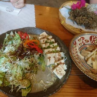 石垣島からさらに奥の離島。 八重山諸島 小浜島にある『結』さんにいってきました。 民家の中で、ご夫婦で経営されているお店です。 写真順に、 ・海ぶどう ・ヤギの刺身 ・アグー豚餃子 ・グルクンの唐揚げ ・珍味島豆腐 ・もずくの天ぷら ・牛タン焼き をいただきました。 ★海ぶどう 沖縄といえば!ですよね。 やはり現地で食べるとかなり新鮮でみずみずしく、 プチっとした食感がたまらなかった。 ★ヤギの刺身 ヤギは人生初でしたが、 臭みもなく、歯応えがあり。 刺身のタレに塩味が効いていてお酒がすすみます ★アグー豚餃子 臭みなくあっさり食べられる品です。 餃子って油っこく重たいかなと思いましたが、 あっさりとしデイて何個も食べられる。 とっても美味しかった! ★グルクンの唐揚げ これが1番美味しかったです。 沖縄でよく食べられる魚グルクンらしく、 身がしっかり詰まった白身魚です。 唐揚げにすると骨までバリバリいけます! 沖縄でしか食べられないとか残念すぎる。。 ★珍味島豆腐 小浜島で作られた島豆腐です。 結構固く、食べ応えある豆腐です。 木綿に似てるけど、もっと固いイメージ。 豆腐の上に載った塩辛などの珍味と良くあいます。 ★もずくの天ぷら もずくの天ぷらって意外と美味しいです! 私はいつも三杯酢で食べますけど、 ガッツリいきたいというときは天ぷらにすると 良いかもと思いました。 ★牛タン焼き 安定の美味しさ。 沖縄で育てられた牛を使っています。 かなり塩味効いてましたのでお酒が進む! と、料理はどれも最高です! 後は、お酒のグラスが琉球グラスで、とても綺麗でした! このグラス欲しいな。。と思いながら帰りましたw 最後は、 お土産に沖縄のお菓子を詰めた袋を頂きました。 島の小料理屋ならではの温かさを感じたお店です。 頻繁には行けないけど、 小浜島にまた来た時は是非寄りたいお店。 ちなみに予約必須で、お子様はNGのお店です。 予約するとホテルまで店主が送迎してくれます。 送迎の時間に合わせて、店内食事時間も決められてますので、事前にお店にお問い合わせした方が良いかと。