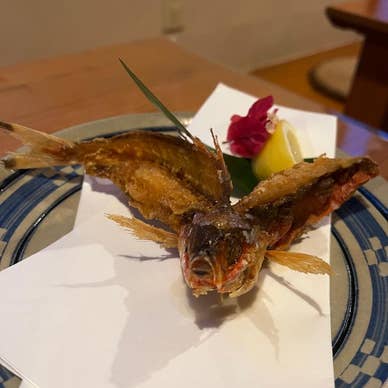 八重山諸島・小浜島の民家で営まれるアットホームな小料理店。海ぶどうやヤギの刺身、アグー豚の餃子、グルクンの唐揚げなど、島食材を生かした料理が揃い、どれも新鮮で丁寧な味わいです。特にグルクンの唐揚げやヤギの刺身など、土地ならではの一品が楽しめます。お酒は美しい琉球グラスで提供され、地元の雰囲気と料理の美味しさを堪能できます。お食事後には沖縄菓子のお土産もあり、島の温かなもてなしを感じられるお店です。予約必須で、お子様はご利用不可。事前に予約すればホテルへの送迎サービスもあり、特別な島時間を過ごせます。