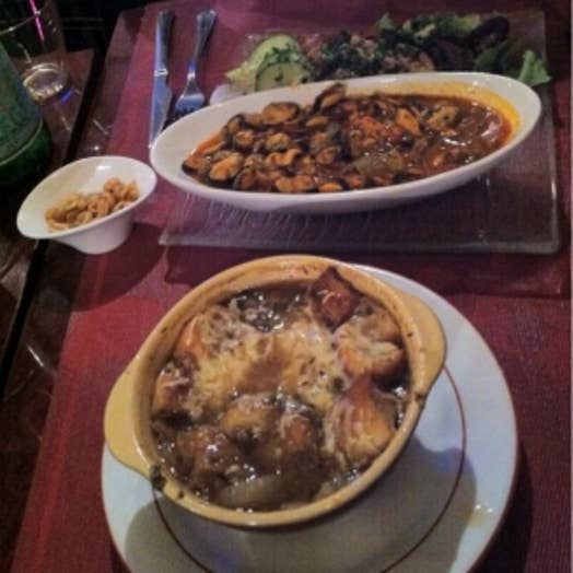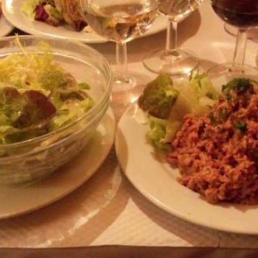 8時を過ぎるとお店は満員。手書きでビッシリ書かれたメニューはall french。めぼしをつけて英語で説明してもらい、なんとかオーダ。私は自家製パテ&タルタルをチョイス。パテもタルタルもメルローのワインにぴったりで、なんとも上品な味。が、このタルタルの量が半端ない。肉肉してる訳でなく、ケッパー、玉ねぎ、パセリ等の香草に酸味がほんのりきいてとても食べやすい。でも、半分も食べれないくらいで満腹に(>_<)日本だったら3人分はあったでしょうか。一緒に行った友人の食べた鴨のコンフィもウサギのハーブ詰めも美味しかった!