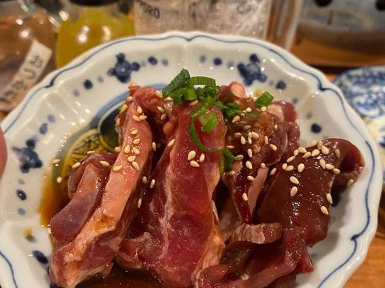 - 炭火串焼きと肉刺しで盛り上がる、仲間と楽しめる活気ある居酒屋「やきとん えん家」
